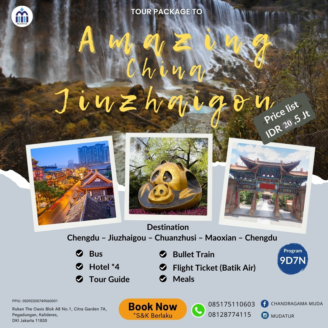 Destinasi : CHENGDU – JIUZHAIGOU – CHUANZHUSI – MAOXIAN – CHENGDU...