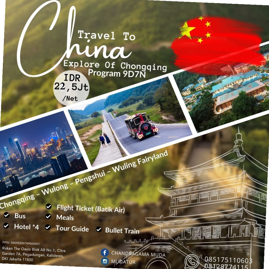 Destinasi : CHONGQING – WULONG – PENGSHUI – WULING FAIRYLAND...