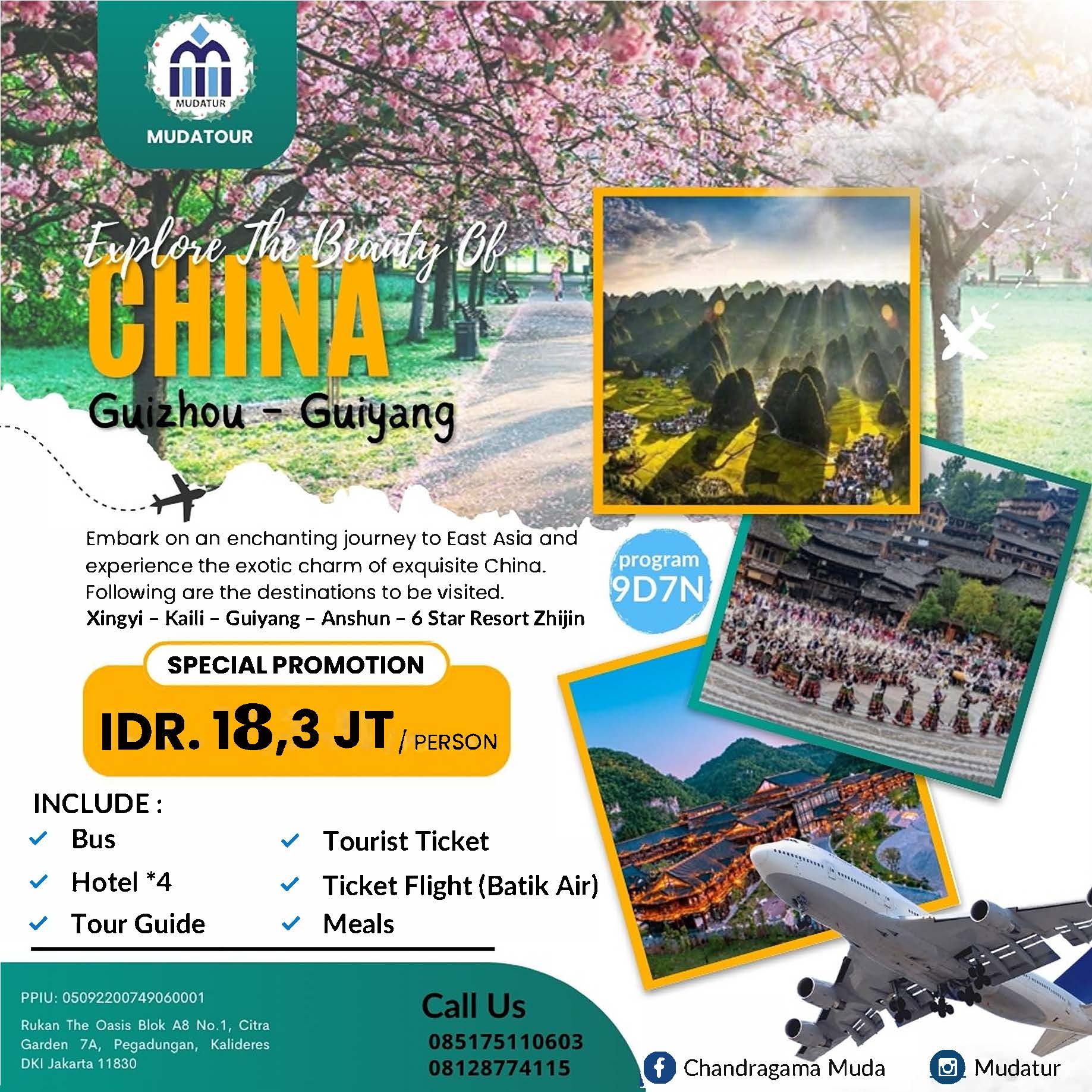 Destinasi : PINGBA CHERRY BLOSSOM GARDEN - JIA XIU PAVILION - HUANGGUOSHU WATERFALL - XIJIANG MIAO VILLAGE - WAFENGLIN SCENIC SPOT...