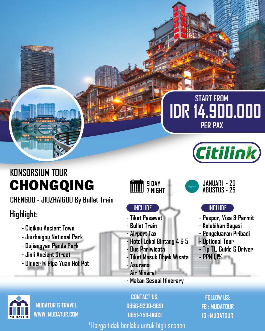 Destinasi : CHONGQING – CHENGDU – JIUZHAIGOU...